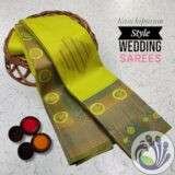 The “tissue” variation incorporates metallic weft yarns for a lightweight, shimmering effect—a modern twist on the classic Kanjivaram heritage. - Note: Additional shipping charges may apply based on delivery location and order size.